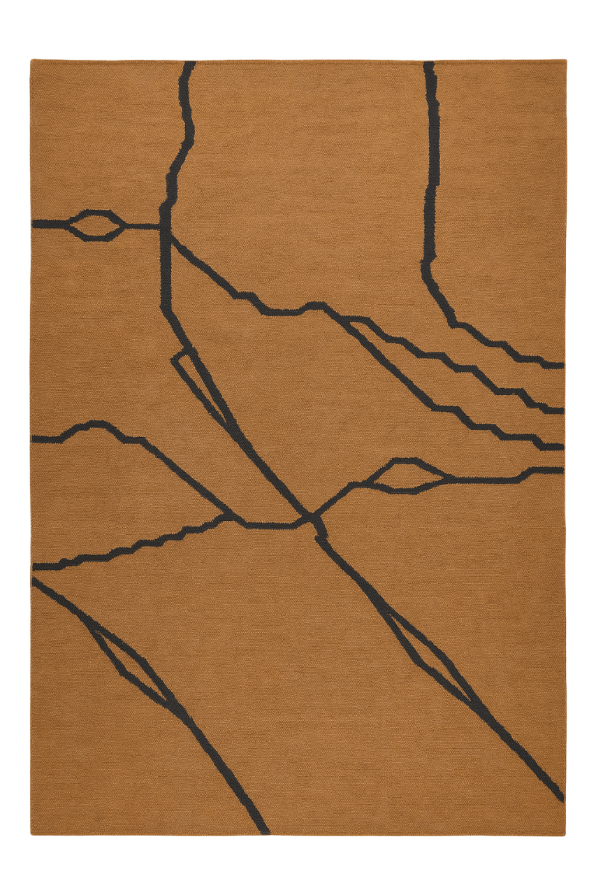 Dieser Teppich der Größe 300x360 gehört zu einer Kollektion, die von den mineralischen Formen der Costa Brava inspiriert ist, wo das Meer langsam Muster auf den Stein zeichnet.